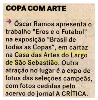 Oscar Ramos, Exposição, Casa de Artes, Largo São Sebastião, Jornal A Crítica