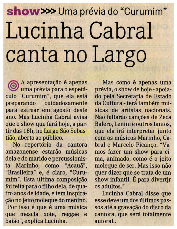 Lucinha Cabral, Largo São Sebastião, Sec, Show