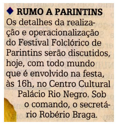 Parintins, Realizações, Festival, Festa, Palácio Rio Negro, Robério Braga