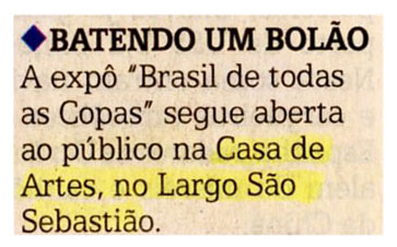 Exposição, Brasil de Toda as Copas, Casa das Artes, Largo de São Sebastião