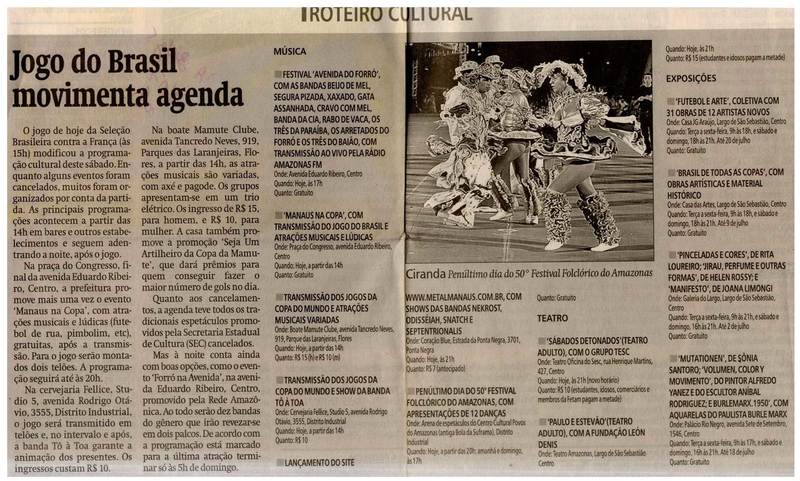 Seleção Brasileira, Praça do Congresso, Evento Manaus na Copa, Roteiro, Música, Teatro, Exposições