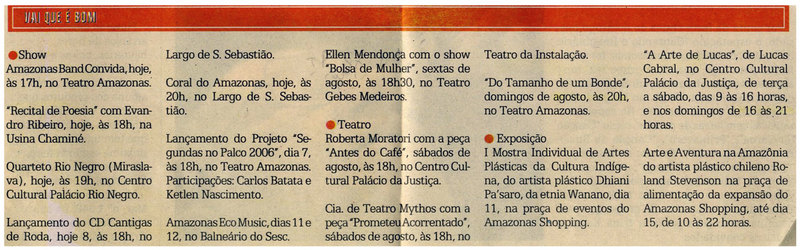 Show, Concerto, Recital, Lançamento, Coral, Teatro, Exposição, Sec, Programação