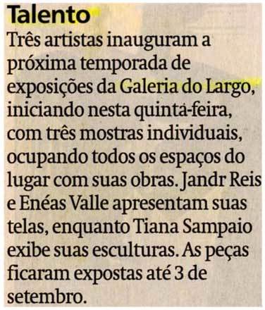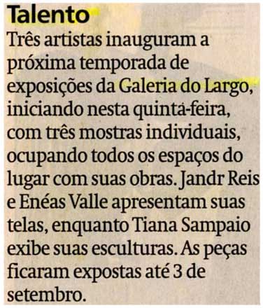 Exposição, Galeria do Largo, Jander Reis, Enéas Valle, Tiana Sampaio