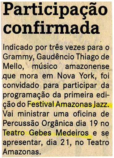 Thiago de Mello, Programação, Festival de Jazz, Teatro Gebes Medeiros, Oficina