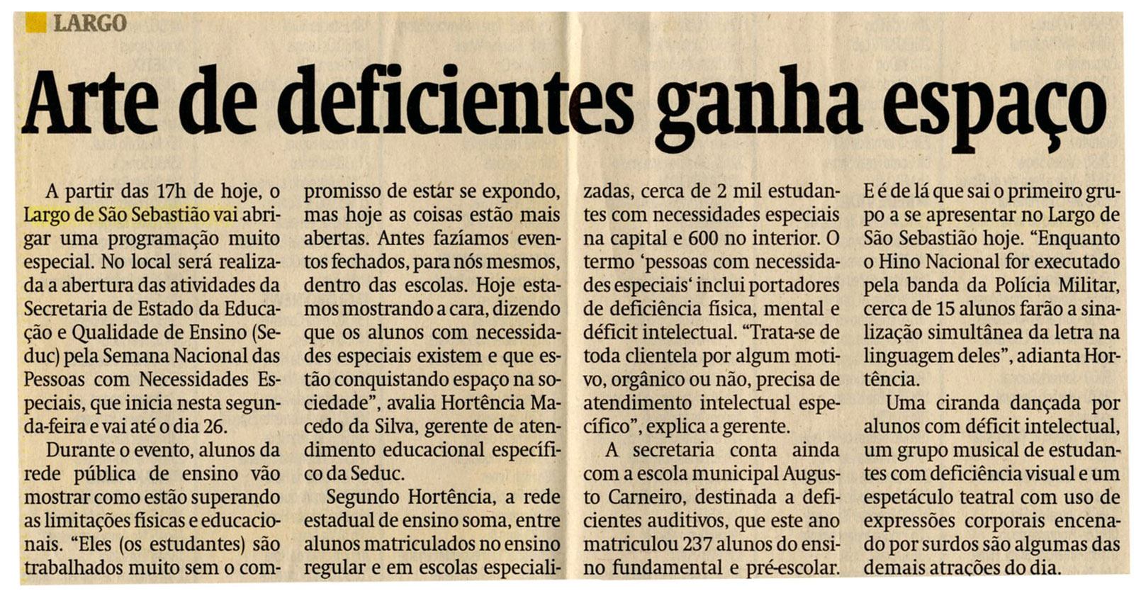 Arte, Deficientes, Sec, Seduc, Semana Nacional das Pessoas com Necessidades Especiais