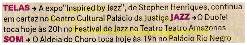 Exposição, Centro Cultural Palácio da Justiça, Festival de Jazz, Teatro Amazonas, Aldeia do Choro