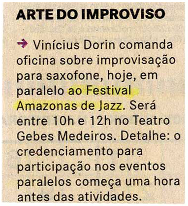 Vinícius Dorin, Festival de Jazz, Teatro Gebes Medeiros, Oficina