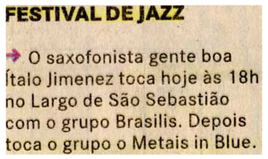 Festival de Jazz, Ítalo Jimenez, Largo São Sebastião, Grupo Brasilis