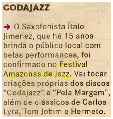 Ítalo Jimenez, Festival de Jazz, Tom Jobim