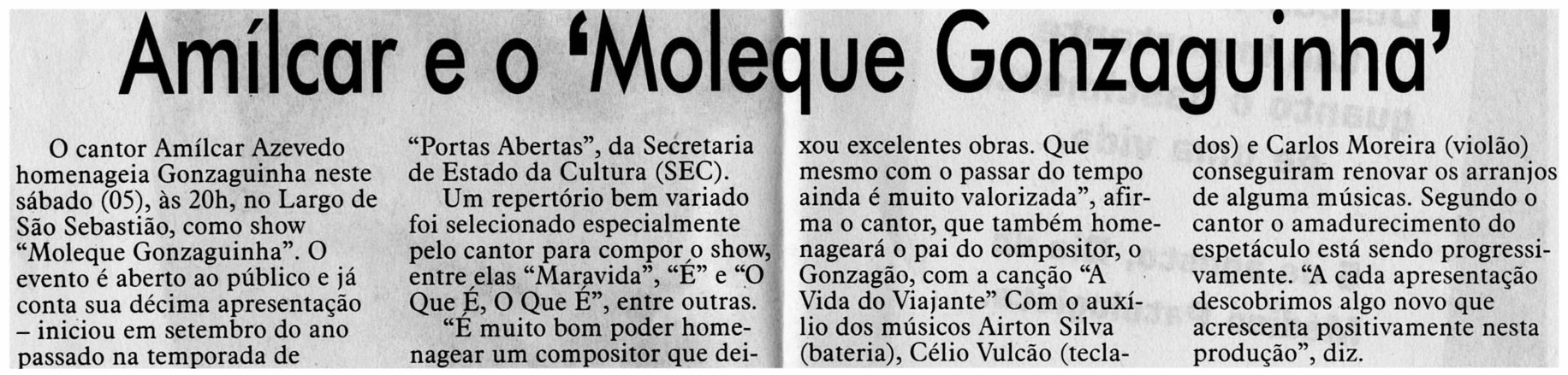 Cantor, Amílcar Azevedo, Homenagem, Gonzaguinha, Sec