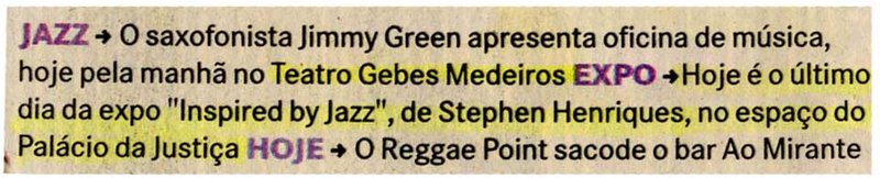 Saxofonista, Jimmy Green, Teatro Gebes Medeiros, Exposição, Bar Ao Mirante