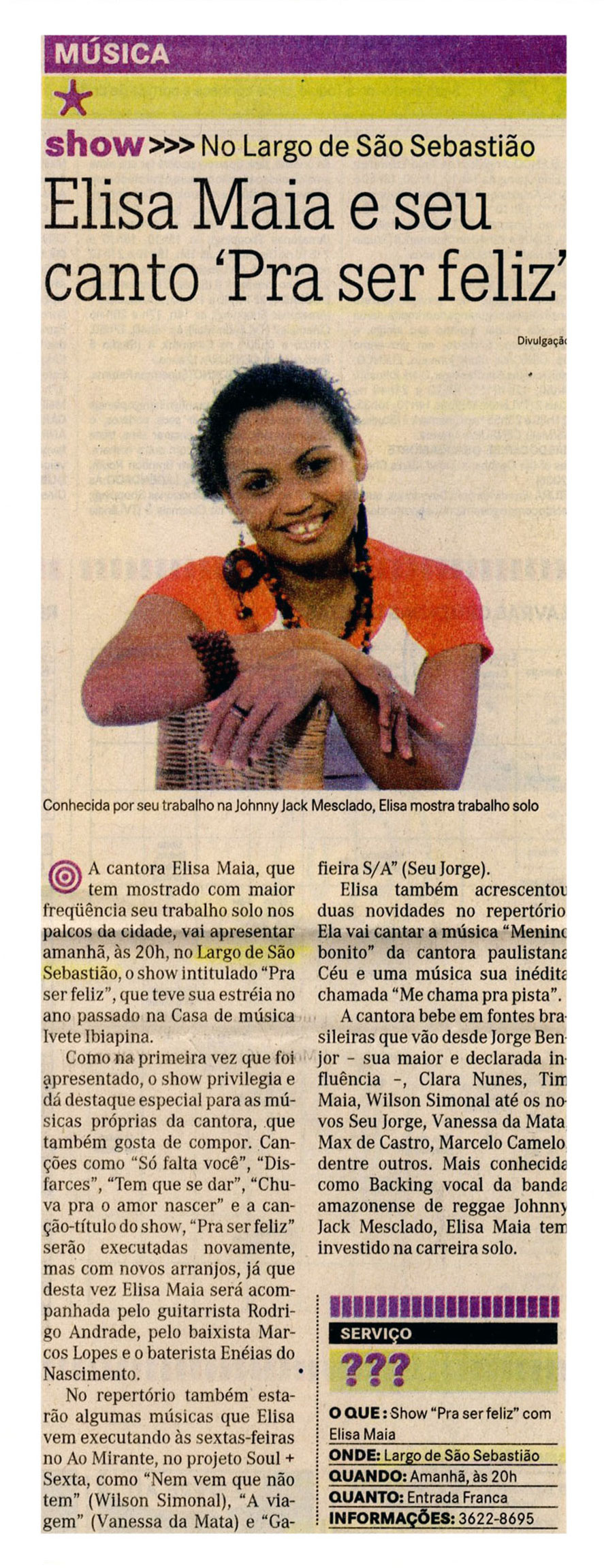 Elisa Maia e seu canto "Pra ser Feliz"