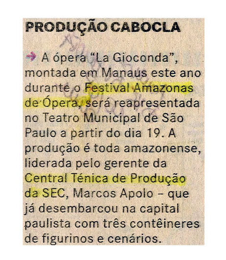 Ópera, La Gioconda, CTP, Sec, Figurinos, Cenários