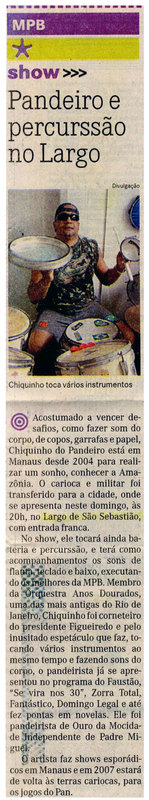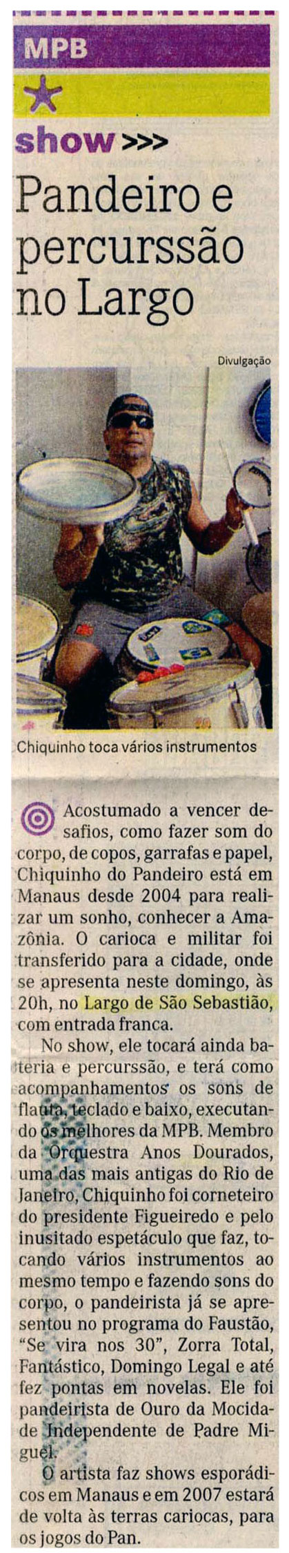 Show, Chiquinho do Pandeiro, Largo São Sebastião, MPB