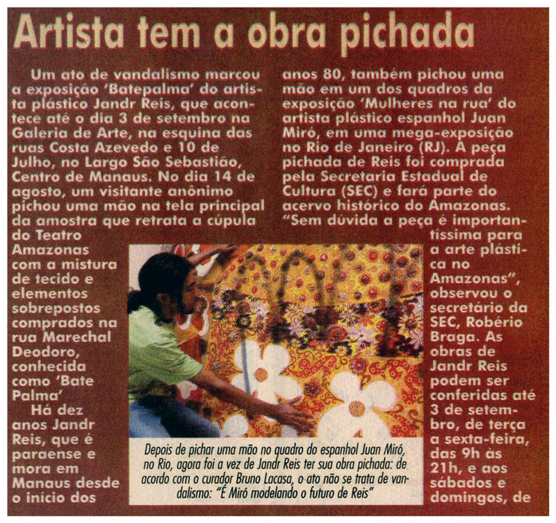 Vandalismo, Exposição, Jandr Reis, Galeria de Arte, Largo São Sebastião