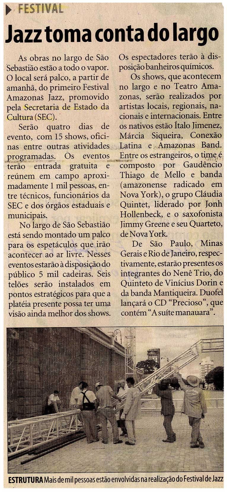 Festival de Jazz, Largo São Sebastião, Sec, Evento, Shows, Oficinas, Espetáculos