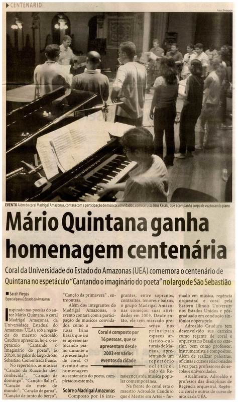 Mário Quintana, Homenagem, Coral, Espetáculo, Largo São Sebastião