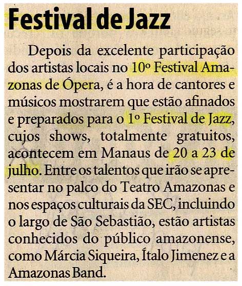 Festival de Jazz, Ópera, Shows, Teatro Amazonas, Largo São Sebastião, Márcia Siqueira, Ítalo Jimenez
