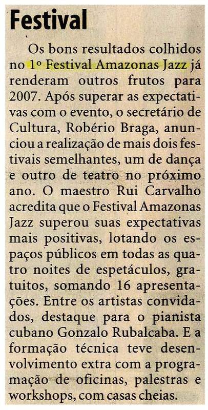 Festival de Jazz, Robério Braga, Dança, Teatro, Rui Carvalho, Workshop, Palestras