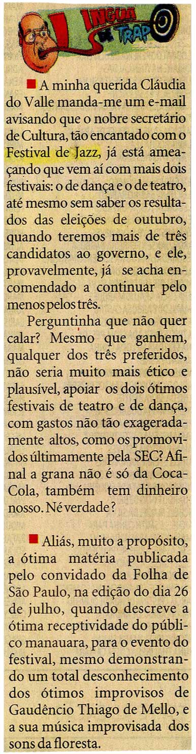 Cláudia do Valle, Apoio, Festival de Jazz, Sec, Evento, Gaudêncio Thiago de Mello