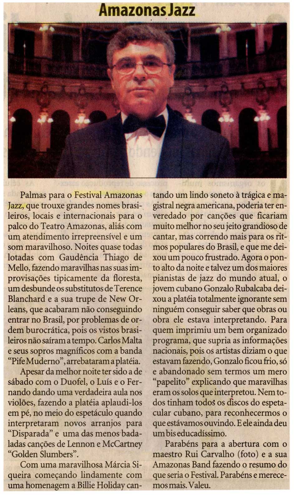 Festival de Jazz, Teatro Amazonas, Gaudência Thiago de Mello, Márcia Siqueira, Rui Carvalho