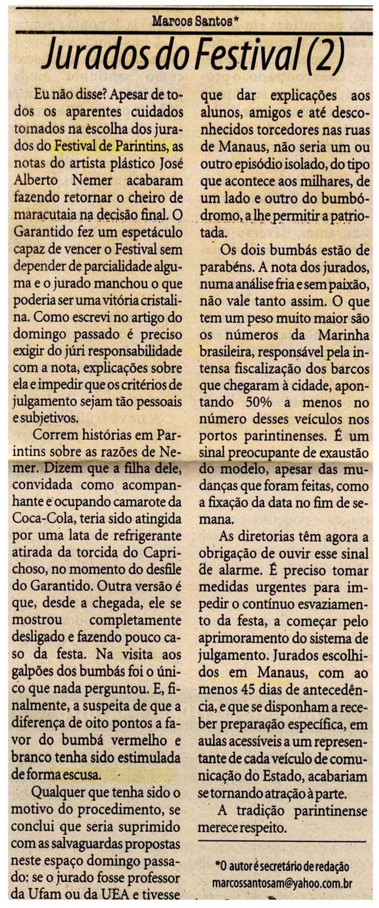 Festival de Parintins, José Alberto, Garantido, Caprichoso, Espetáculo, Ufam, Uea, Jurados