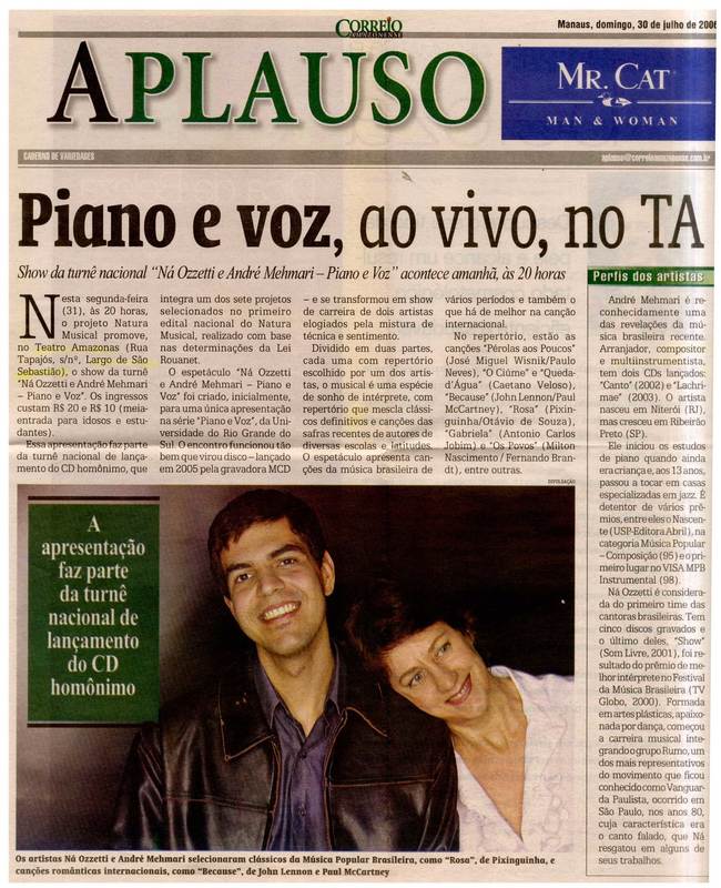 Piano, Teatro Amazonas, Largo São Sebastião, Show, Lançamento