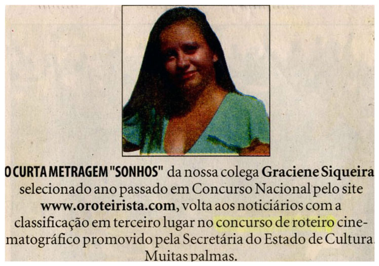 Graciene Siqueira, Curta Metragem, Concurso de Roteiro, Sec