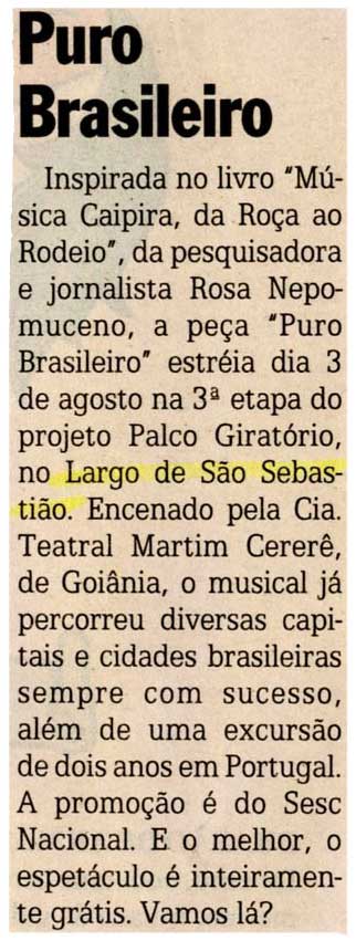 Puro Brasileiro, Largo de São Sebastião, Cia Teatro Martin Carerê, Sesc, Palco Giratório