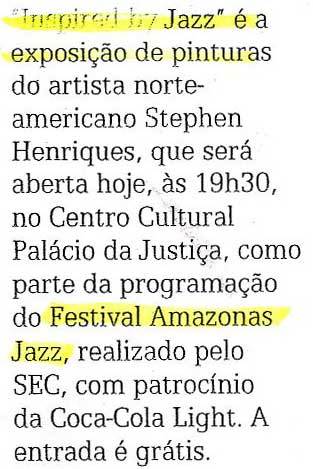 Exposição Pinturas, Palácio da Justiça, Festival Amazonas Jazz, Sec, Coca-cola