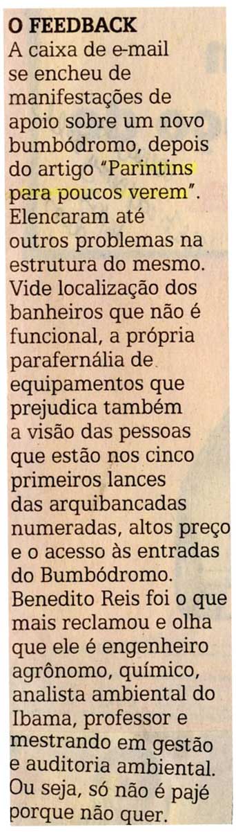 Feedback, Parintins, Bumbódromo, Ibama, Pajé
