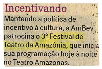 Política de Incentivo, Ambev, Festival de Teatro da Amazônia, Programação, Teatro Amazonas