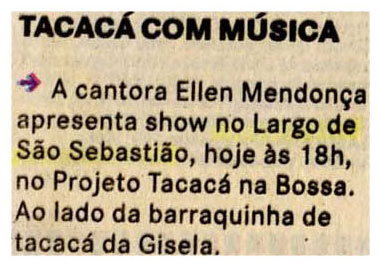 Música, Ellen Mendonça, Show, Largo São Sebastião, Projeto Tacacá na Bossa