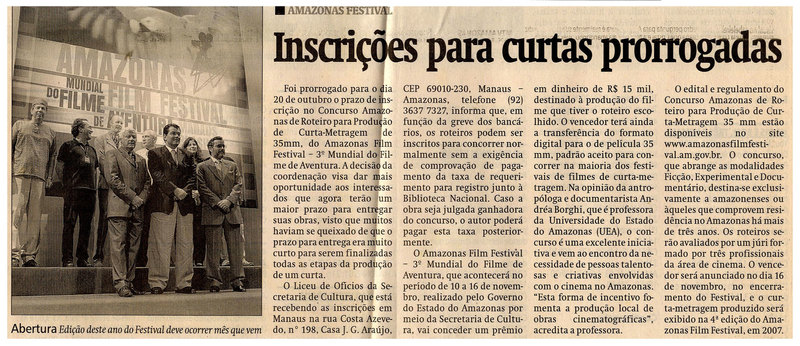 Inscrição, Prorrogação, Concurso, Amazonas Filme Festival , Liceu de Ofícios, Sec, Governo do Estado, Edital