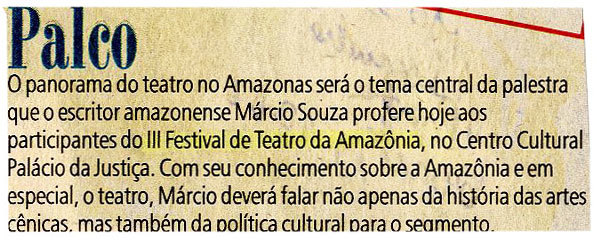 Márcio Souza, Festival de Teatro, Centro Cultural Palácio da Justiça