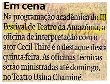 Programação, Festival de Teatro, Oficina, Cecil Thiré, Teatro Usina Chaminé