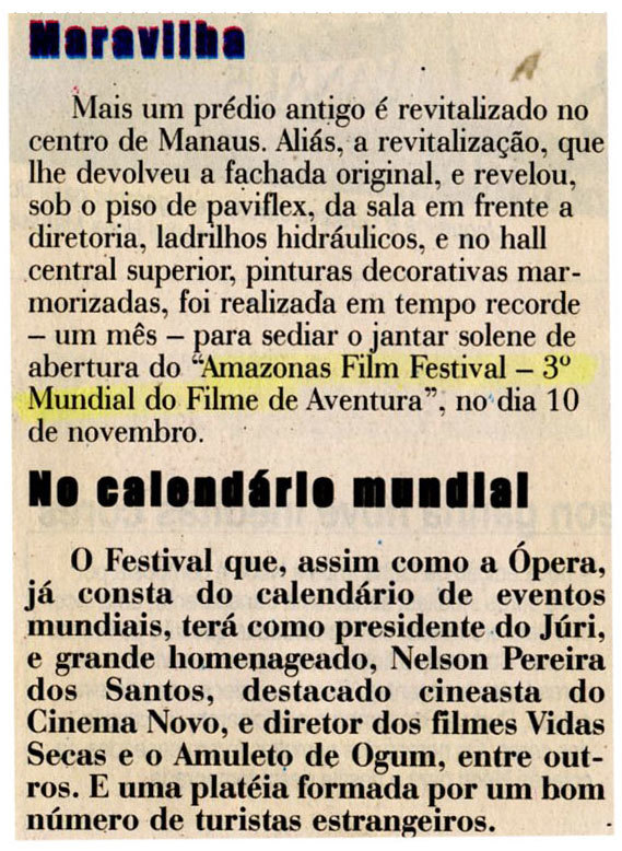 Revitalização, Amazonas Film Festival, Ópera, Calendário de Eventos, Nelson Pereira