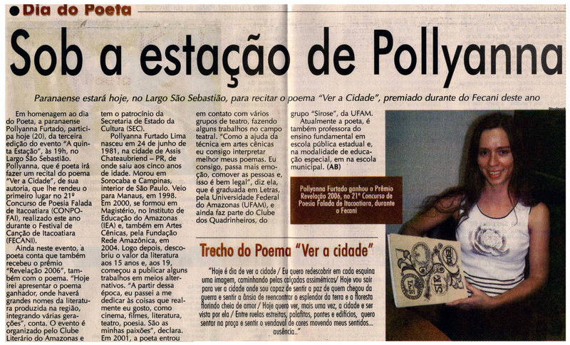 Dia do Poeta, Pollyana Furtado, Homenagem, Largo São Sebastião, Recital, Poema, Clube Literário, Sec