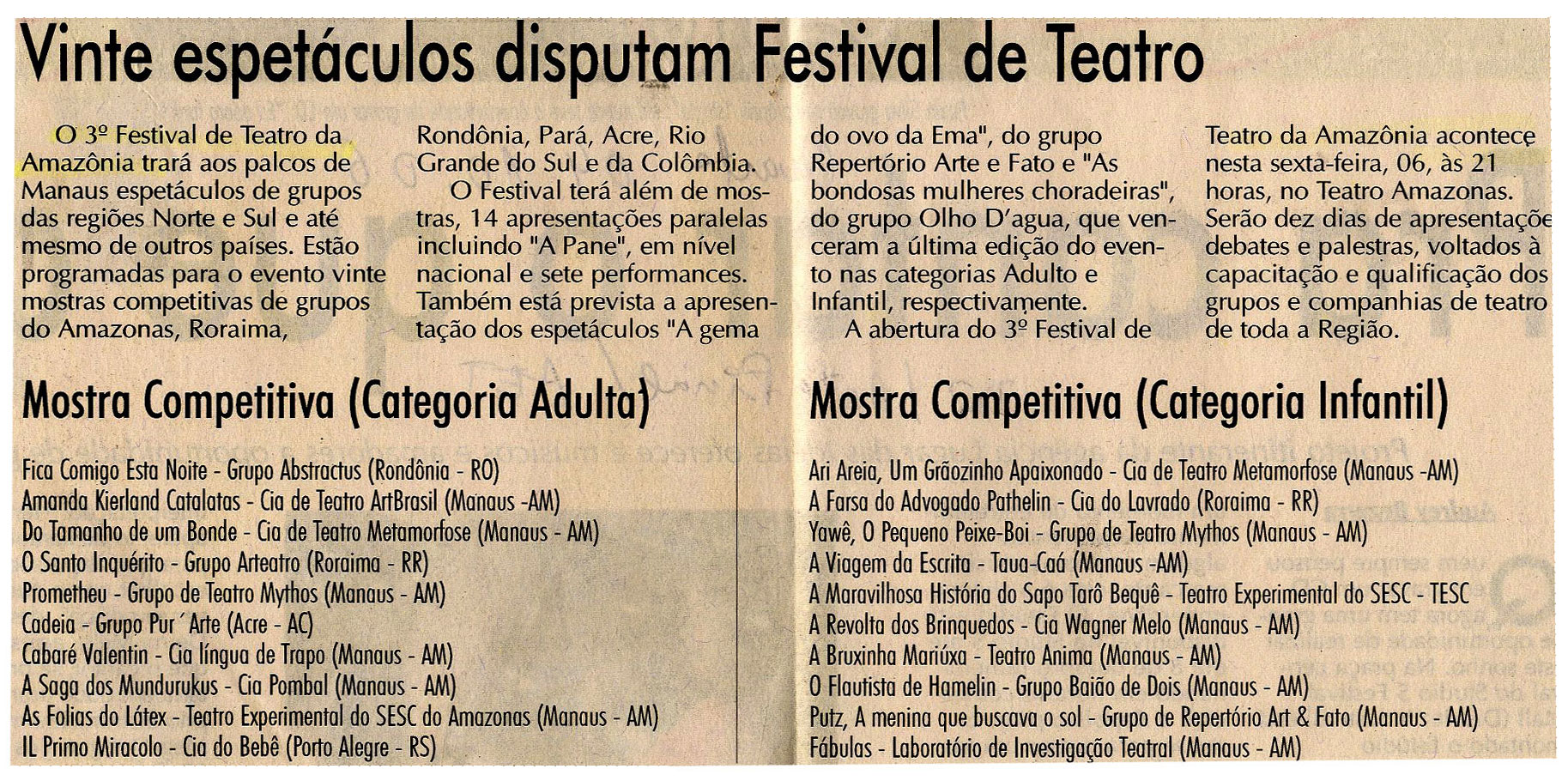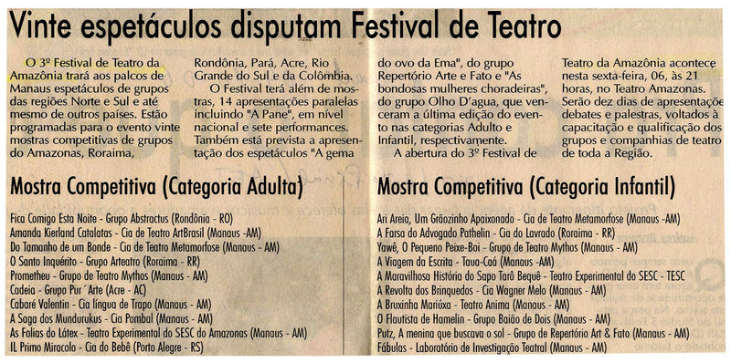 Espetáculo, Festival de Teatro, Mostras, Apresentações, Teatro Amazonas, Debates, Palestras