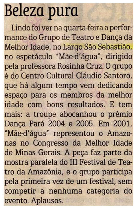 Grupo de Teatro da Melhor Idade, Largo São Sebastião, Espetáculo, Rosinha Cruz, Centro Cultural Cláudio Santoro, Prêmio