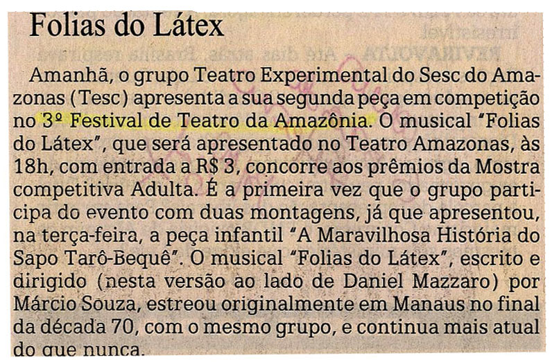 Festival de Teatro, Sesc, Musical, Teatro Amazonas, Prêmio, Peça, Márcio Souza