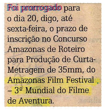 Concurso Amazonas de Roteiro, Inscrição, Amazonas Film Festival, Prorrogado
