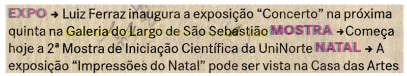 Exposição, Luiz Ferraz, Galeria do Largo, Mostra, Uninorte, Natal, Casa das Artes