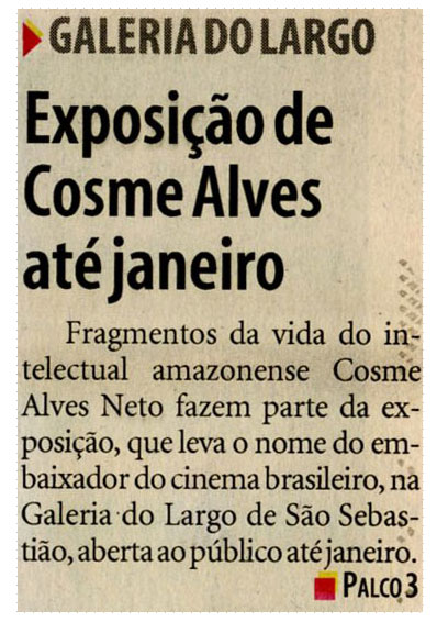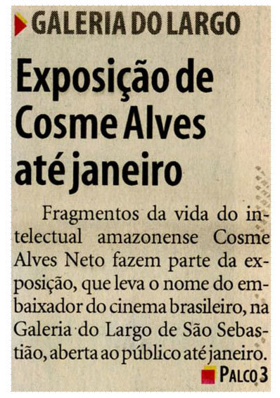 Exposição, Galeria do Largo, Cinema, Largo São Sebastião, Cosme Alves Neto