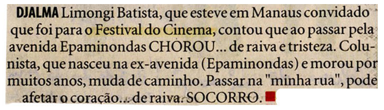 Bjalma Limongi, Colunista, Festival de Cinema, Avenida Epaminondas
