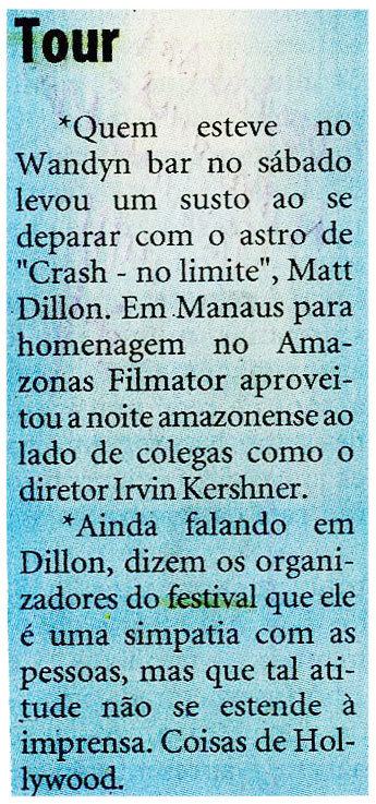 Wandir Bar, Matt Dillon, Homenagem, Festival
