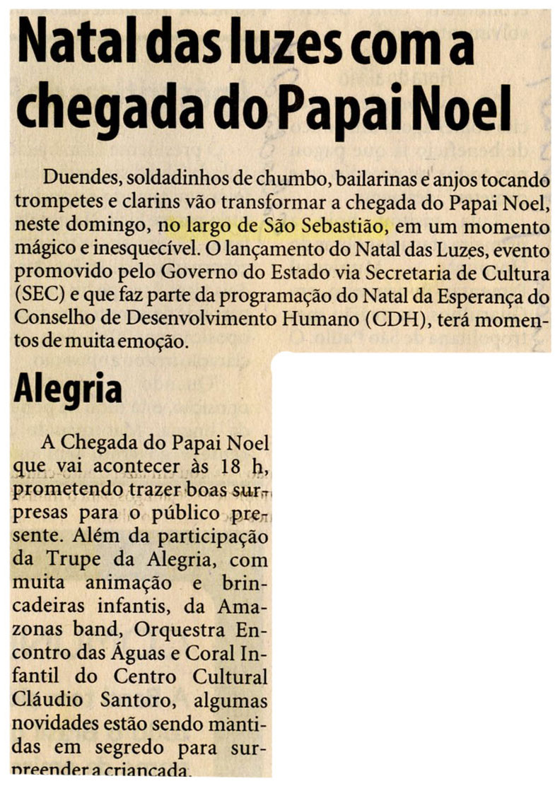 Papai Noel, Largo São Sebastião, Natal das Luzes, Sec, CDH, Cláudio Santoro, Orquestra, Coral