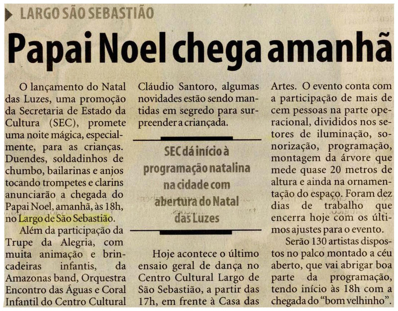 Largo São Sebastião, Papai Noel, Sec, Abertura, Lançamento