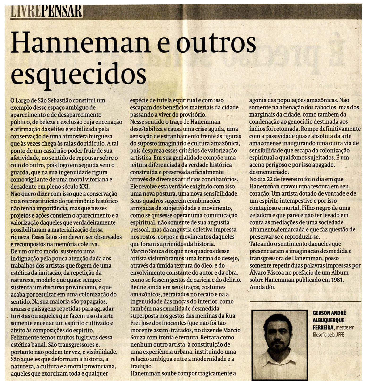 Largo São Sebastião, Hanneman, Gérson André Alburqueque, Artistas, Patrimônio