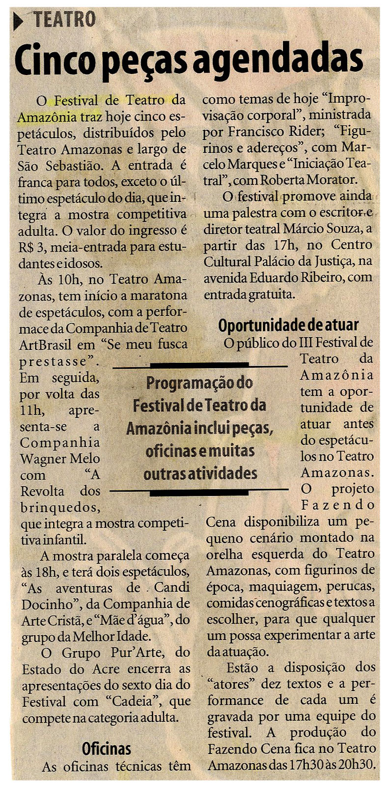 Teatro, Peças, Festival de Teatro da Amazônia, Espetáculos, Teatro Amazonas, Largo, Oficinas, Projeto